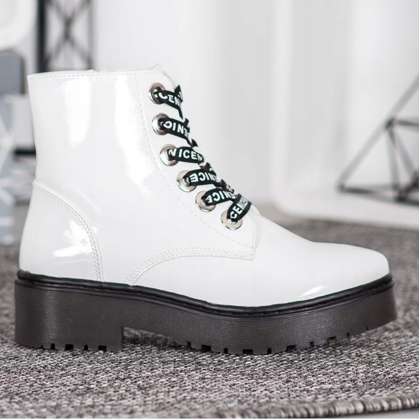 Descoperă un stil unic cu botinele de damă Sergio Leone, care au devenit un element obligatoriu al fiecărei colecții de modă. Pantofii până la glezne combină eleganța cu confortul, ceea ce se reflectă în partea superioară atent selecționată din material lăcuit asemănător pielii, într-o culoare albă clasică.
