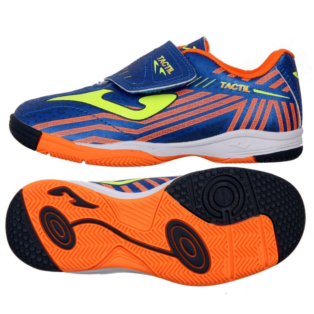Pantofii de indoor Joma Tactil 904 In Jr TACW.904.IN albastru sunt alegerea perfecta pentru tinerii fotbalisti care cauta incaltaminte adecvata pentru antrenamente si meciuri in sala. Acest model dinamic a fost produs de renumitul brand spaniol - Joma, specializat în proiectarea de echipamente sportive de înaltă calitate.