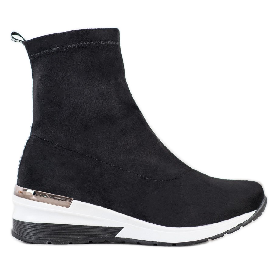 Aceste botine negre au fost concepute pentru un stil de viață activ. Confectionate din piele intoarsa ecologica, nu numai ca arata impresionant, dar ofera si o ventilatie adecvata. Un călcâi moale, încorporat, înfășoară piciorul, ceea ce face ca încălțămintea să fie extrem de confortabilă, iar purtarea zilnică este o plăcere.