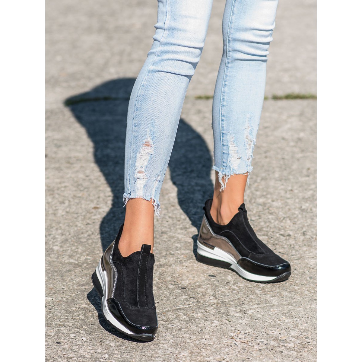 Descoperiți pantofii eleganti slip-on VINCEZA din piele într-o culoare clasică neagră, care va fi soluția perfectă de zi cu zi. Acești pantofi sport de damă combină moda și funcționalitatea, astfel încât să îi poți asorta cu ușurință la diverse stiluri.