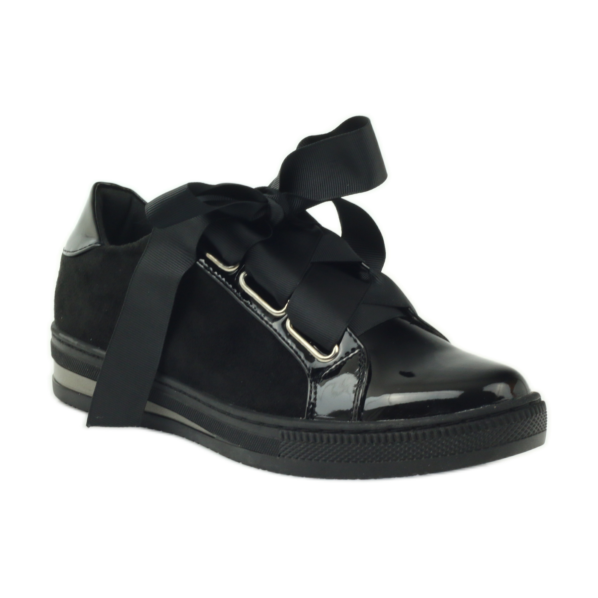 Modelul 462 se distinge prin curele metalice decorative cu o panglică elegantă înfilată prin ele, care conferă pantofilor un caracter unic. Designul cu șireturi asigură o potrivire perfectă pe picior, ceea ce înseamnă că pot fi purtate atât de persoanele cu picioare subțiri, cât și de cele groase. Interiorul pantofilor este căptușit cu un branț din piele, căptușit cu un burete moale, asigurând confort chiar și în timpul plimbărilor lungi.