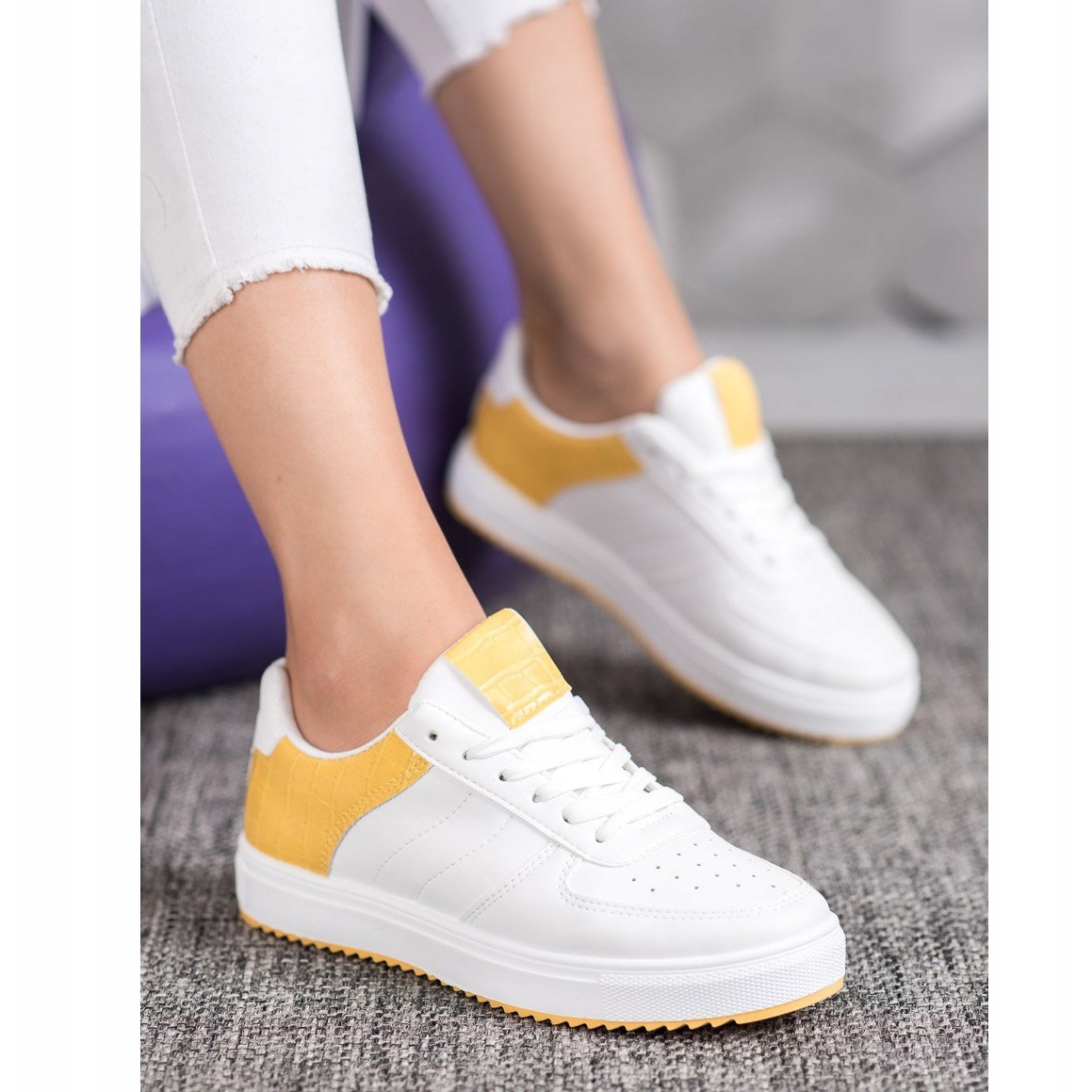 Pantofii eleganti cu platforma SHELOVET in alb sunt alegerea perfecta pentru femeile moderne care apreciaza atat confortul cat si stilul original. Acești pantofi sport se remarcă prin tălpi galbene și inserții interesante pe partea superioară, care le conferă un aspect original, perfect pentru diversificarea oricărui stil de zi cu zi.
