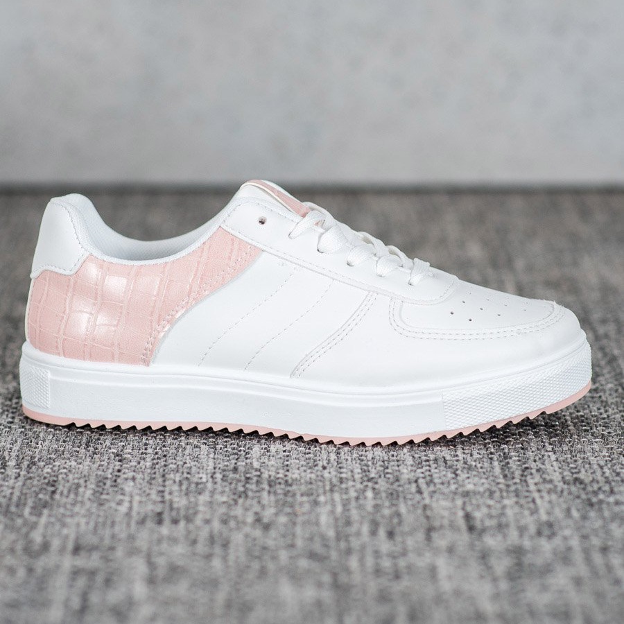 Descoperă un stil unic cu pantofii SHELOVET care combină eleganța și confortul! Acești pantofi sport cu platformă albă se remarcă printr-un design proaspăt, la modă, completat perfect de accente delicate de roz. Perfect pentru femeile care doresc să arate feminin și să se simtă confortabil în același timp.