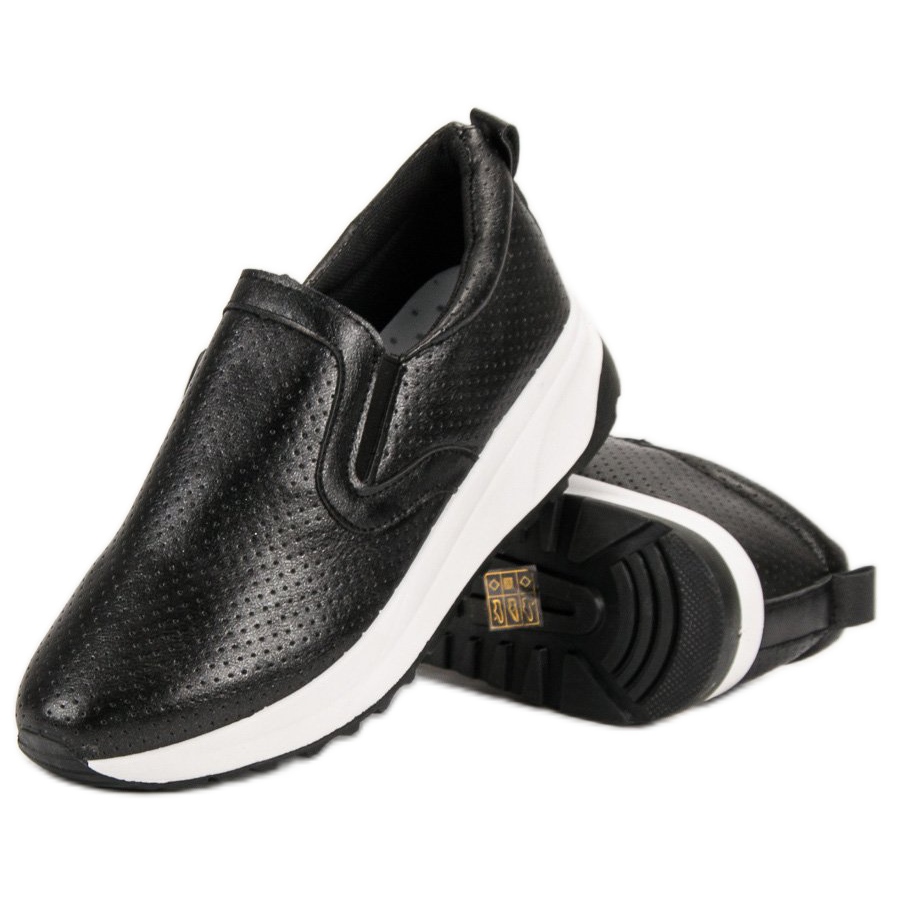 Pantofii slip-on negri Shelovet sunt alegerea perfectă pentru femeile care doresc să îmbine stilul cu confortul. Finisajul lor ajurat confera pantofilor un caracter modern si in acelasi timp asigura o circulatie excelenta a aerului, care mentine picioarele proaspete pe tot parcursul zilei. Realizați din material de înaltă calitate asemănător pielii, acești pantofi combină estetica cu caracterul practic.