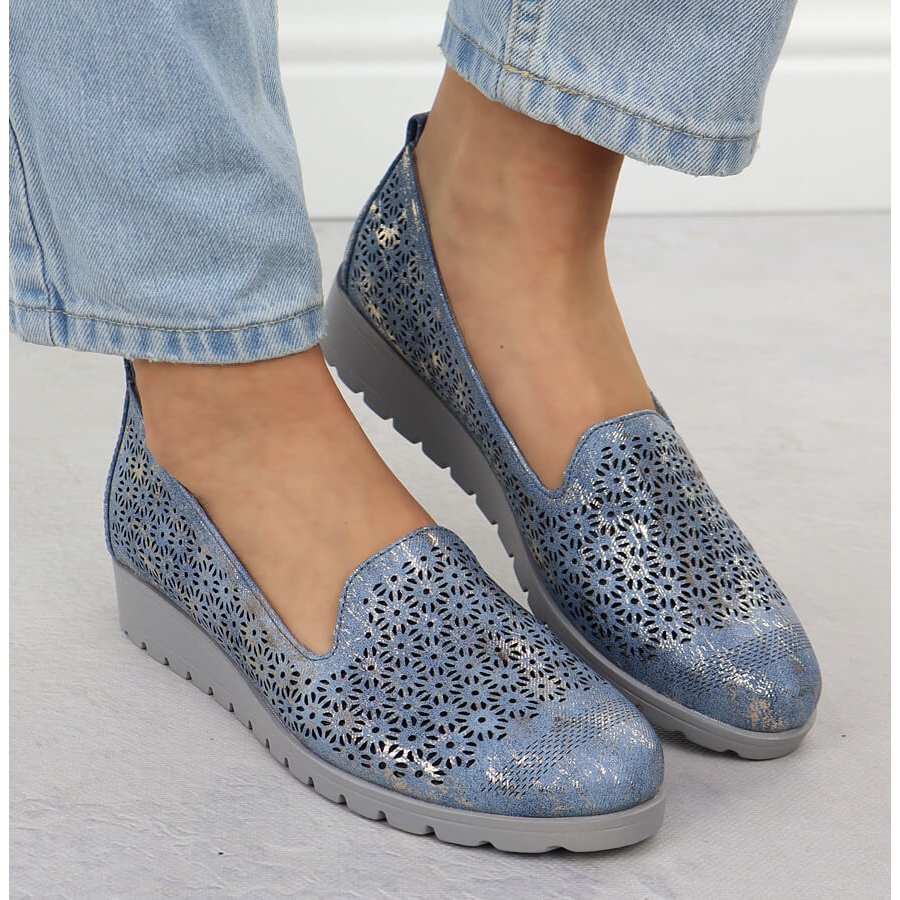 M. DASZYŃSKI Încălțăminte pentru femei la înălțimea căminului auriu Openwork M. Daszyński MR1628-20 albastru