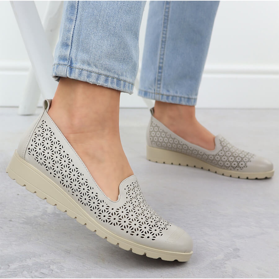 M. DASZYŃSKI Încălțăminte pentru femei la înălțimea Openwork Beige M. Daszyński MR1628-20 bej