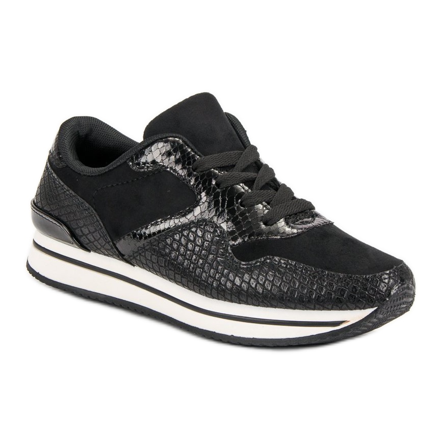 Descoperiți o combinație extraordinară de stil și confort cu pantofii noștri negri cu imprimeu de șarpe. Cine a spus că originalitatea și eleganța sunt rezervate doar tocurilor înalte? Acești pantofi unici vor adăuga caracter oricărui stil de zi cu zi, atrăgând atenția și ieșind în evidență în mulțime.