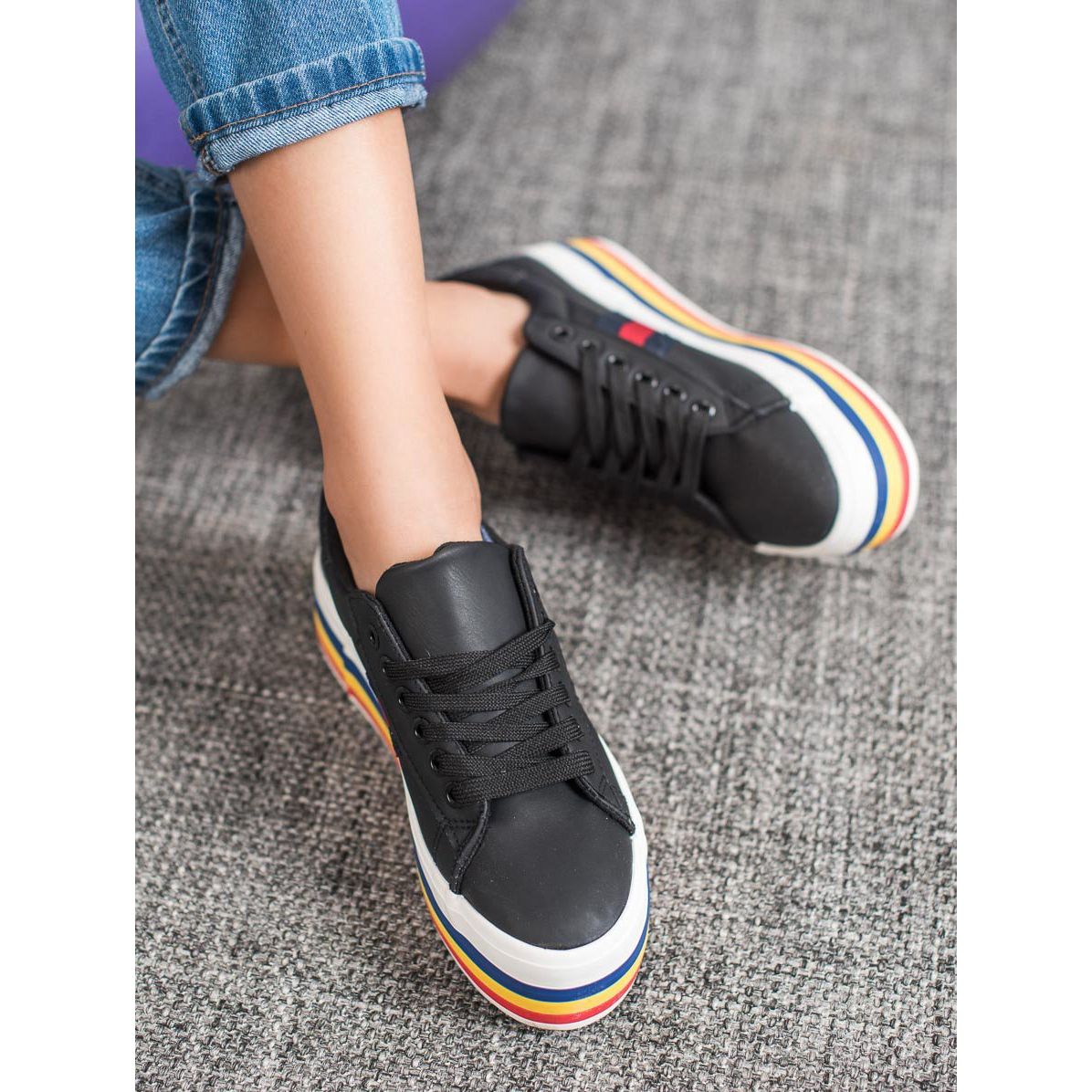 Descoperiți pantofi sport extraordinari cu platformă înaltă de la SHELOVET care îmbină perfect stilul și confortul. Acești pantofi sport negri multicolori au un design unic datorită dungilor colorate de pe talpă, ceea ce îi face un plus excelent pentru o varietate de ținute de zi cu zi.