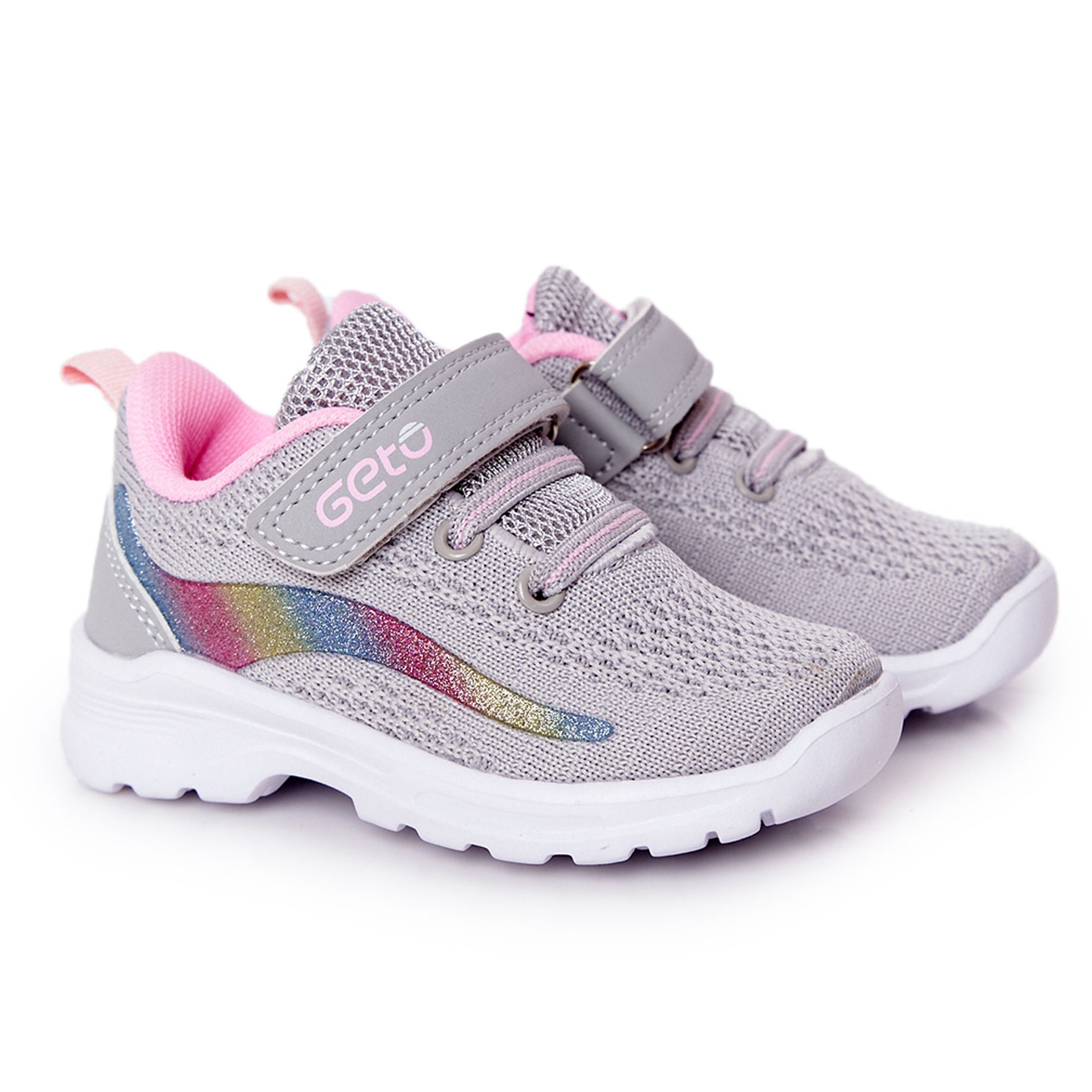 Va prezentam pantofi sport pentru copii, adidasi Ready Go! în culori la modă gri și roz, cu multe accente colorate. Acești pantofi stilați, prinși cu Velcro, îmbină funcționalitatea și designul modern, perfect pentru fetele active.