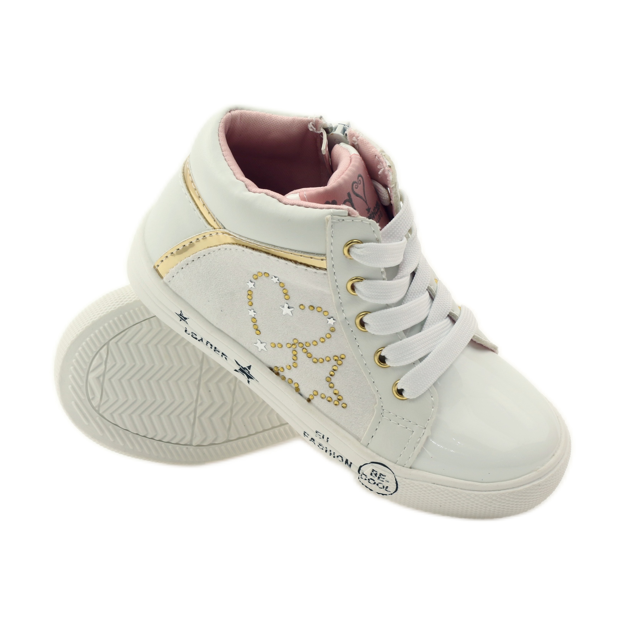 Va prezentam pantofi sport American Club pentru fete, care imbina stilul cu confortul si functionalitatea. Modelul 17296, disponibil în culori atractive galbene cu frumoase decorațiuni aurii în formă de inimă și stea, va atrage cu siguranță micile fashioniste.
