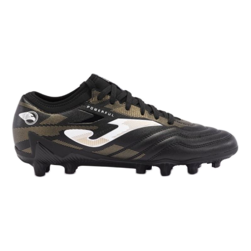 Pantofii de fotbal JOMA HOMAS 2401 Black Gold Firma sunt o alegere excelentă pentru bărbații care doresc să combine eleganța cu funcționalitatea pe teren. O culoare elegantă, neagră, cu elemente aurii subtile le oferă un aspect modern, care se potrivește perfect în tendințele sportive de astăzi.