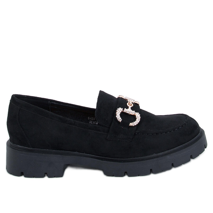 Inna marka Karins Mocasini de piele intoarsa neagra cu catarama negru