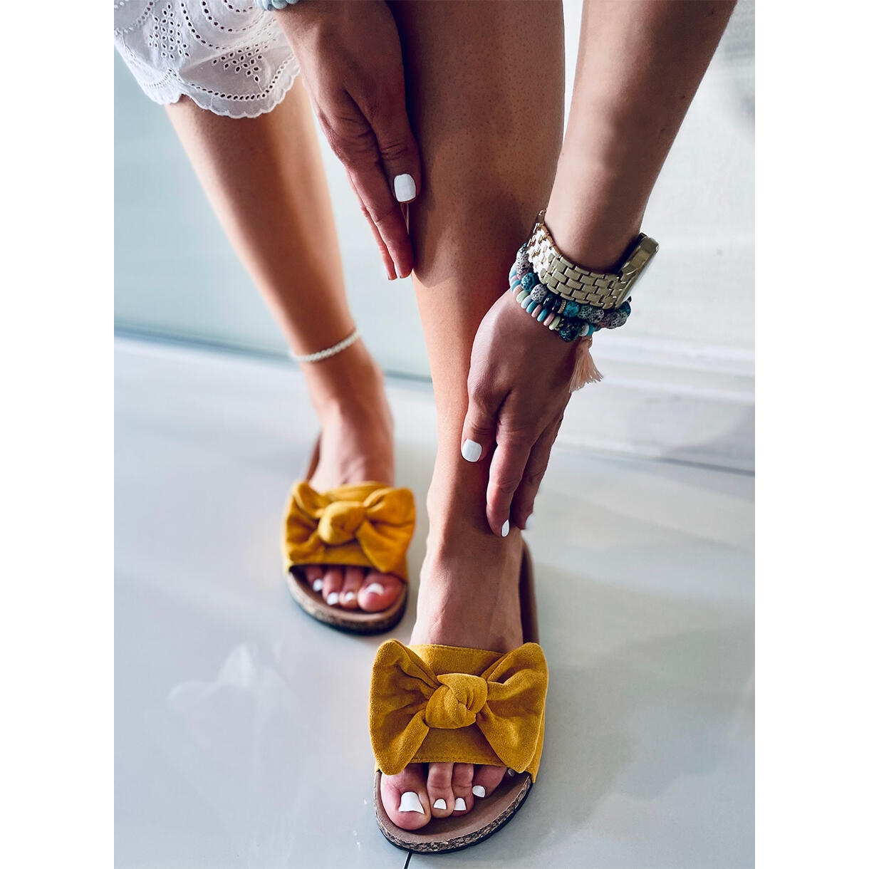 Descoperiți confortul și stilul de vară cu șlapii de plută Kiara Yellow! Acești șlapi unici pentru femei combină eleganța și funcționalitatea, făcându-le alegerea perfectă pentru ieșirile de zi cu zi. Un design simplu, neted, într-o culoare galben intens, decorat cu o fundă subtilă, va adăuga prospețime oricărui stil de vară.
