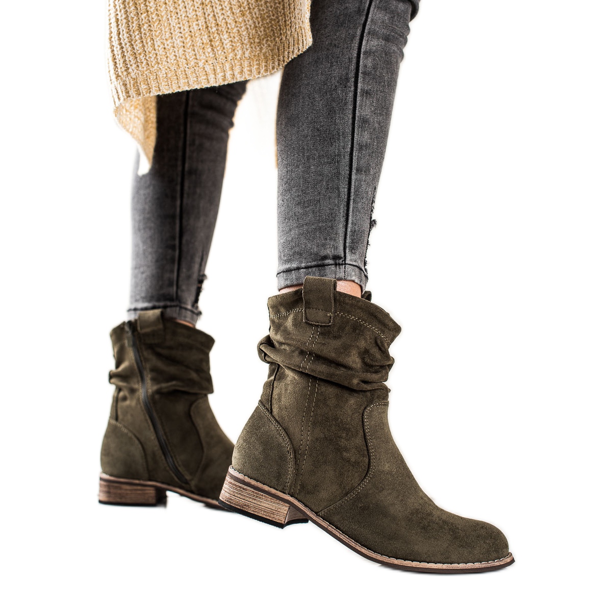 Va prezentam cizme de cowboy Event elegante si stilate care se potrivesc perfect tendintelor modei din sezonul toamna/iarna. Aceste cizme verzi la modă sunt alegerea perfectă pentru femeile care apreciază confortul și designul original. Confectionate din piele intoarsa ecologica, arata extrem de atractiv, iar nasul lor rotund le face confortabil de purtat.