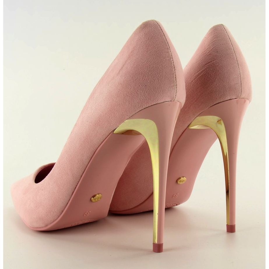 Pompe superbe și extrem de elegante pe un bolț. Ei au un toc de aur stilat, care pune accent pe clasa lor. Slender degetele de la picioare și o tăietură clasică fac ca pantofii să arate foarte bine pe picior.