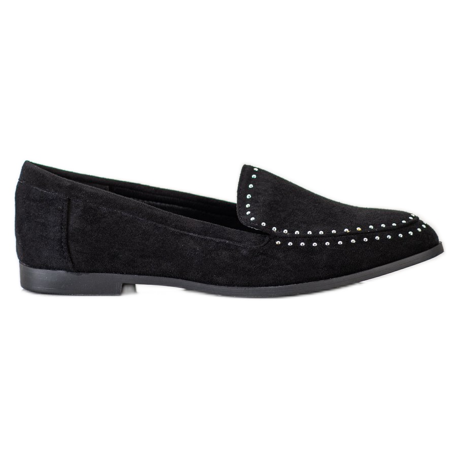Realizate din imitatie de piele intoarsa de inalta calitate, acesti lords arata extrem de sic, iar culoarea lor neagra le face sa se potriveasca cu multe stiluri. Călcâiul este închis și moale, făcându-l confortabil de purtat toată ziua. Un avantaj suplimentar sunt decoratiunile argintii sub forma de strasuri, care dau incaltamintei un caracter modern si elegant.