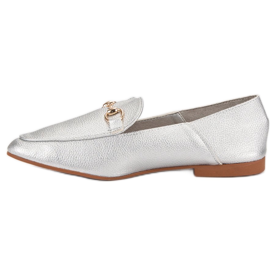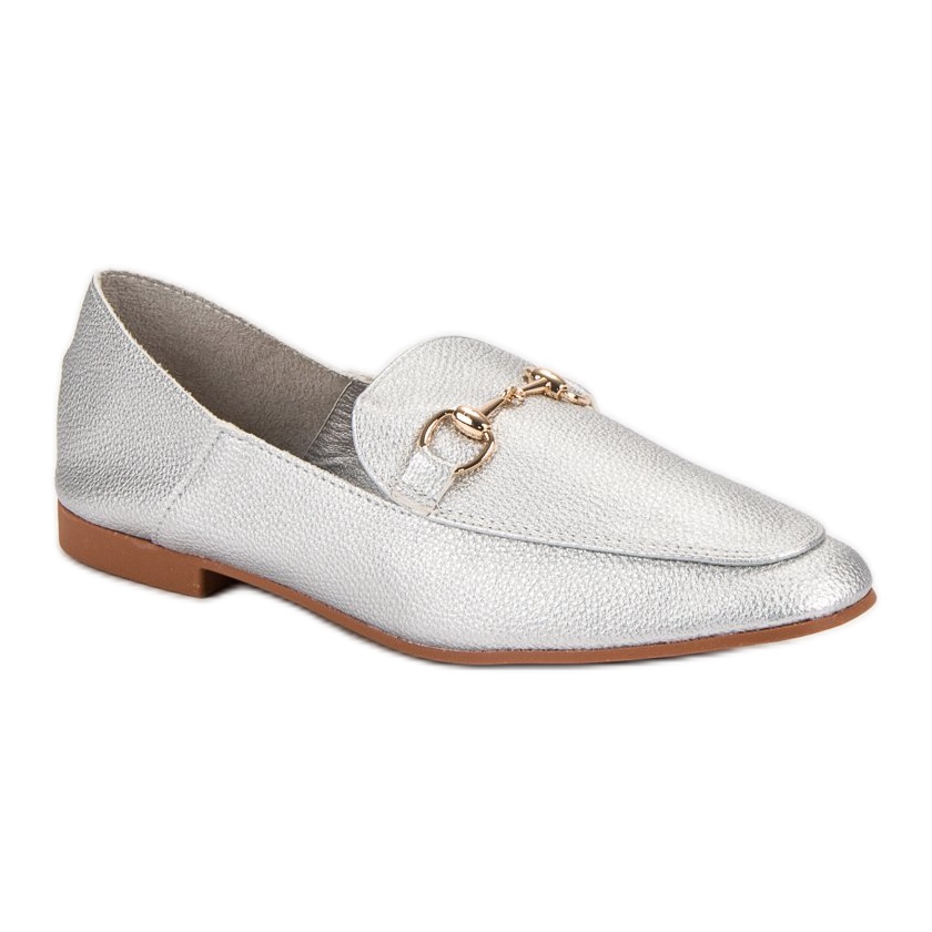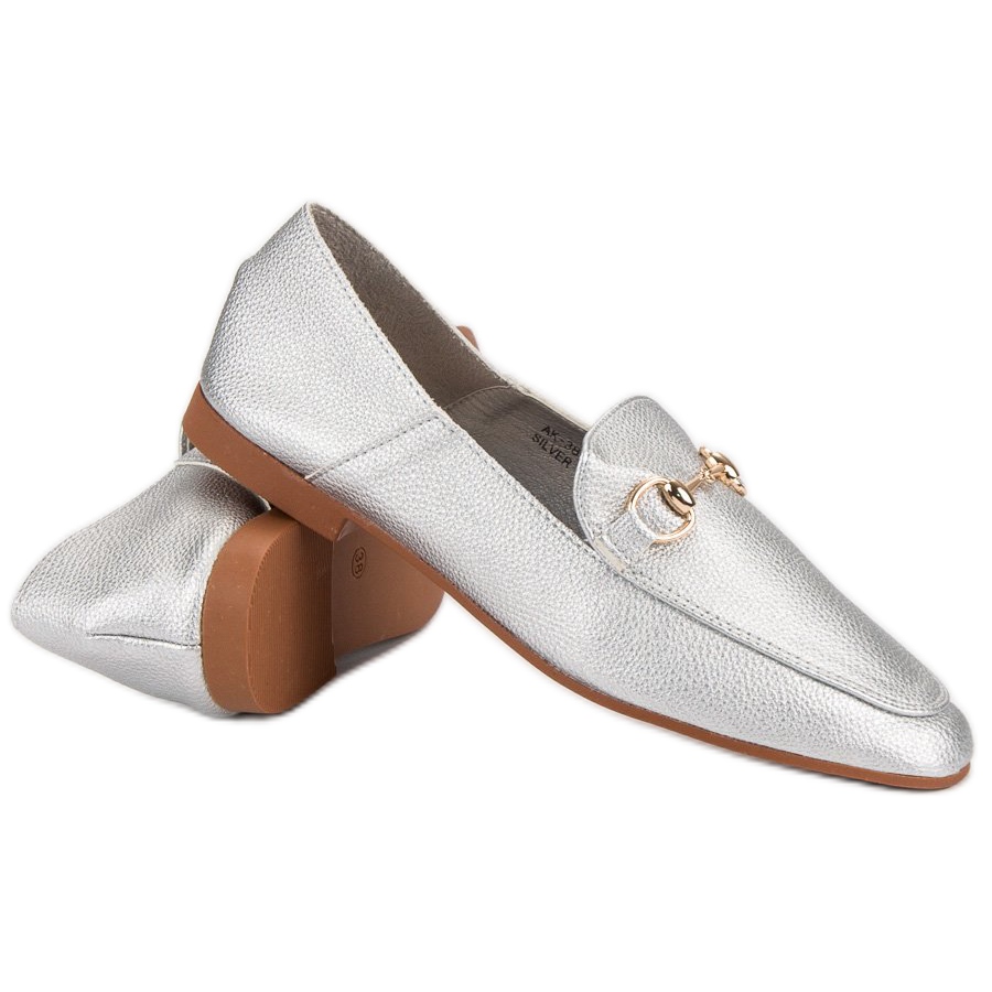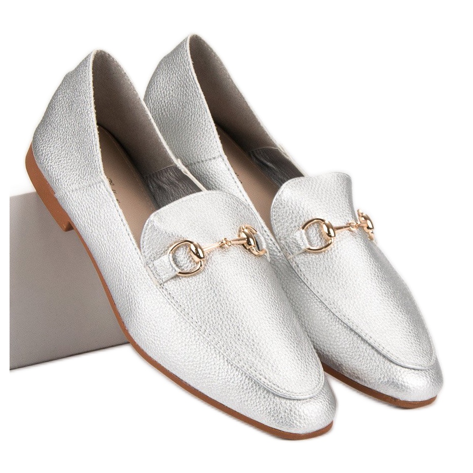 Lordii gri argintiu de la marca Comer sunt o alegere perfectă pentru femeile care doresc să adauge un accent unic garderobei lor. Acești pantofi eleganți se remarcă prin detalii aurii care le subliniază caracterul la modă, făcându-i accesoriul perfect pentru lucru sau întâlniri formale.