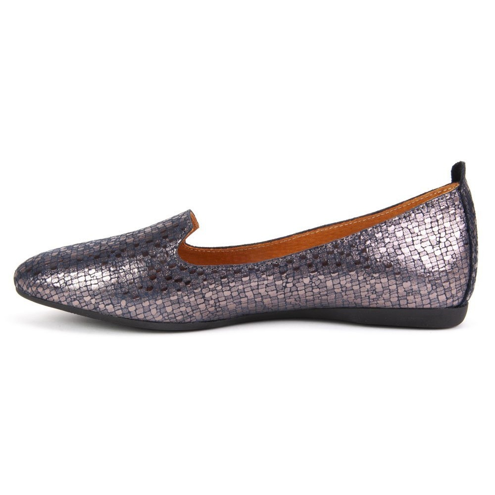 Confecționați din piele naturală de înaltă calitate, pantofii balerini oferă o ventilație și o potrivire excelente, ceea ce îi face extrem de confortabil de purtat. Izolarea nu este necesară în acest model, așa că picioarele tale se vor simți proaspete toată ziua. Căptușeala și branțul din piele sporesc în plus confortul de utilizare, iar culoarea bleumarin cu accente metalice adaugă eleganță.