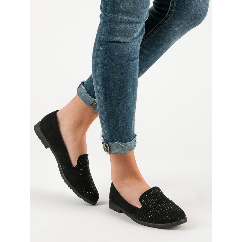 Black Lords With Crystals este o propunere care încântă prin combinația sa de stil și confort. Acesti pantofi unici, confectionati din piele intoarsa ecologica, vor atrage cu siguranta atentia datorita subtilelor cristale negre asezate in fata. Perfecte pentru purtarea de zi cu zi, sunt o alternativă excelentă la balerinii tradiționali, oferind în același timp un aspect modern și unic.