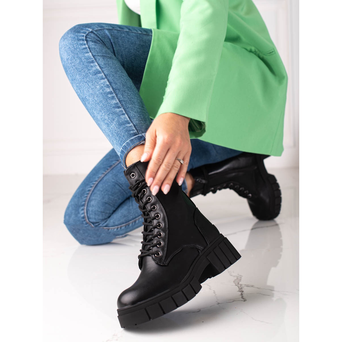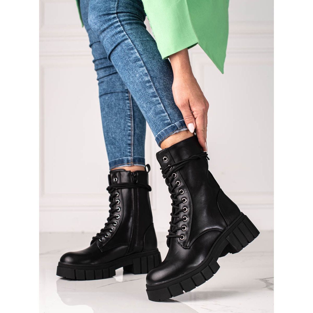 Vă prezentăm cizmele de muncitoare de damă Shelovet cu talpă groasă, care sunt alegerea perfectă pentru sezonul viitor de toamnă și iarnă. Aceste botine negre elegante combină stilul casual cu cel rock, făcându-le un element versatil al oricărei garderobe.
