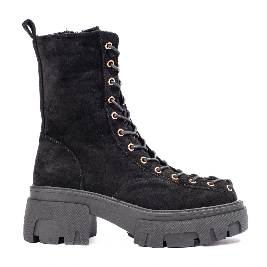 Muncitorii negri eleganți și durabili, făcuți din piele de căprioară ecologică. Perfect pentru zile mai răcoroase, datorită izolației și a introducerii „păturii de încălțăminte”. Combinația de stil casual și rock face ca pantofii să se potrivească perfect atât de cotidian, cât și de stilizări mai expresive.