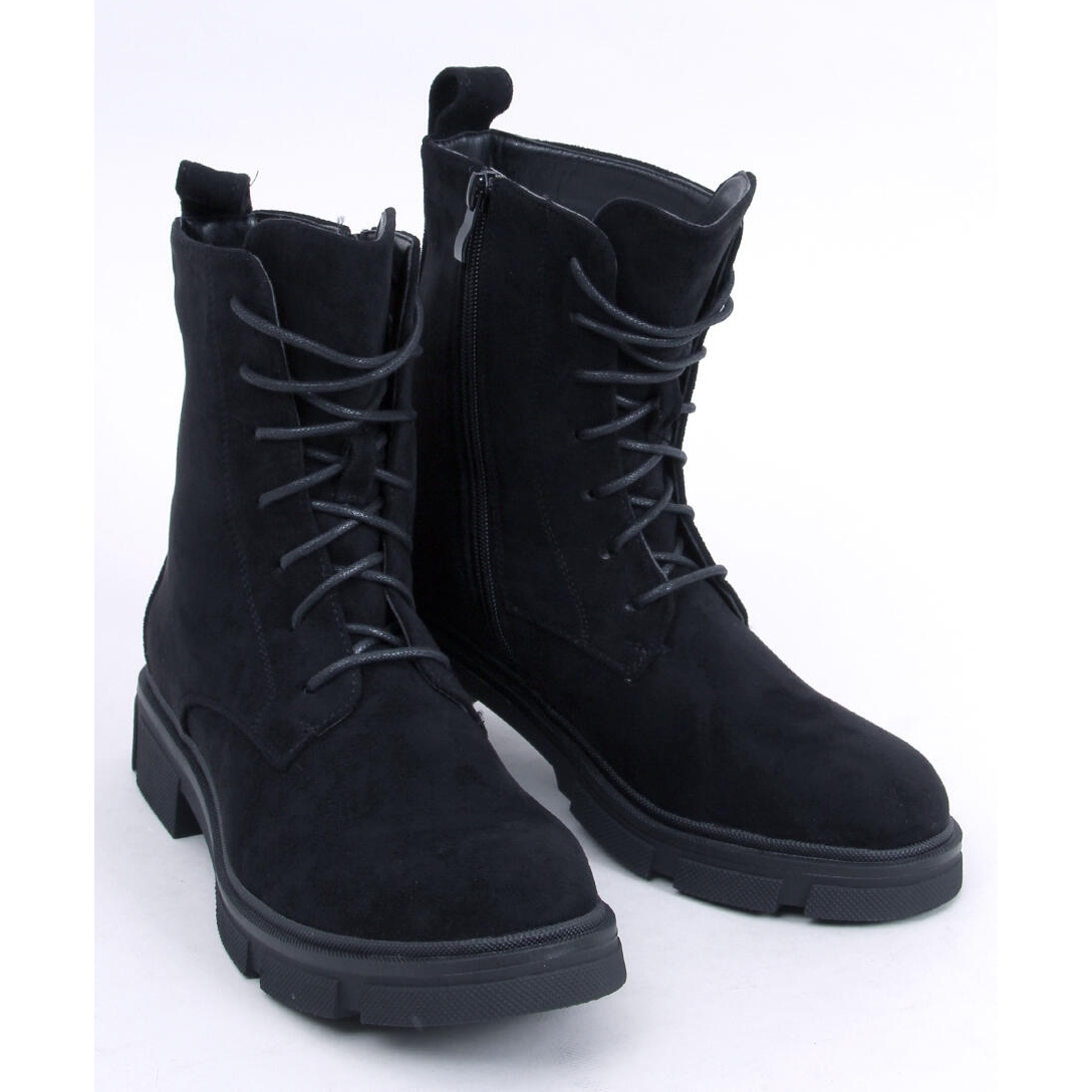 Produsul este pantofi muncitori negri de dama, cu siret, cu talpa groasa. Cizmele au fermoar practic pe lateral, ceea ce le face ușor de pus și scos, iar șiretul reglabil permite o potrivire perfectă a cizmelor pe picior. Sunt destinate utilizării zilnice. Muncitorii sunt netede, fără model. Produs de brandul „Inna Marka” din colecția KeeShoes.