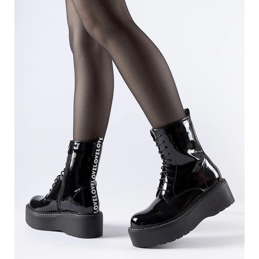 Designul lor cu șireturi asigură o potrivire perfectă pe picior, iar călcâiul mediu cu platformă adaugă eleganță și stabilitate. Acesta este un model ideal pentru tânăra generație care vrea să iasă în evidență printr-un stil original. Lucrătorii cu patente negre se potrivesc perfect cu diverse ținute, subliniind caracterul casual dar elegant al fiecărui stil.