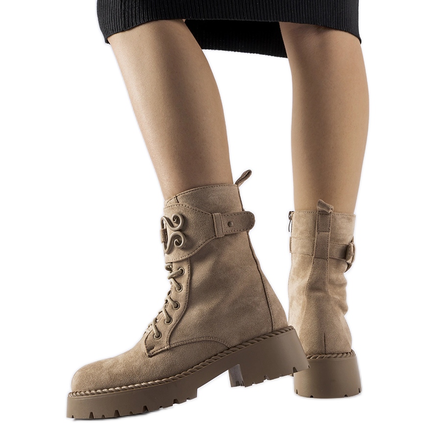 Îți plac pantofii practici și la modă? Acești muncitori ai femeilor din nuanța Kaki combină confortul cu caracterul urban. Fabricate din piele de căprioară ecologică, izolate și ajungând la gleznă, sunt minunate în sezonul de toamnă. Nasul rotund oferă picioarelor spațiul potrivit, iar 5 cm platforma prelungește subtil cifra, adăugând încredere în timpul ieșirilor de zi cu zi.