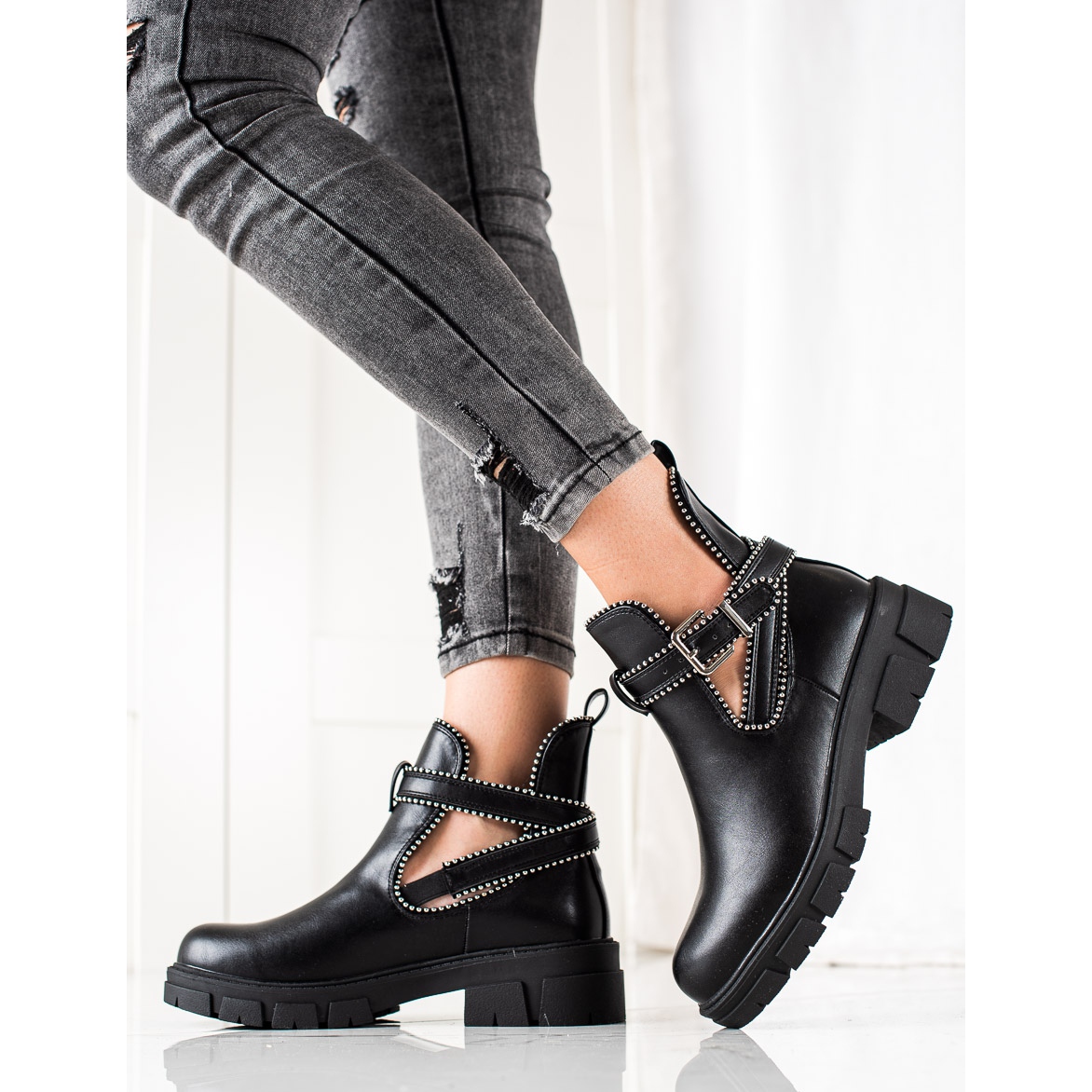 Vă prezentăm muncitori slip-on fashion negri de la producătorul Bestelle, care se potrivesc perfect celor mai noi tendințe de încălțăminte. Aceste botine de damă îmbină stilul casual, rock și fashion, ceea ce le face să se potrivească perfect cu diverse seturi de zi cu zi, atât pentru întâlniri sociale, cât și pentru ieșirile casual.