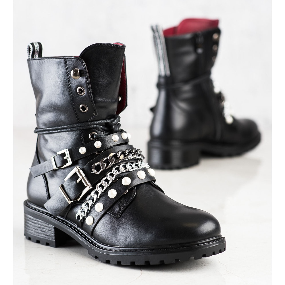 Talpa din plastic are benzi de rulare, care sporesc tracțiunea și stabilitatea pe diverse suprafețe. Elemente suplimentare precum catarama decorativa, centura, strasurile si lantul confera acestor cizme un caracter unic, rock, care poate fi usor combinat cu diverse stiluri.