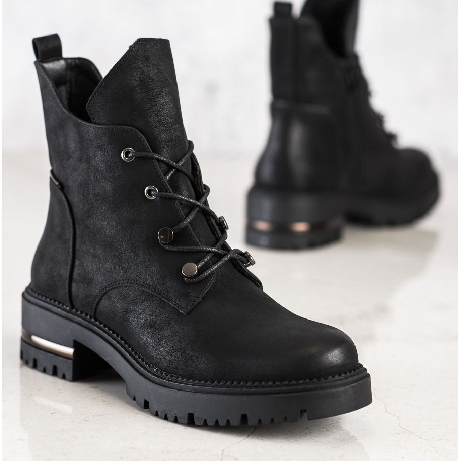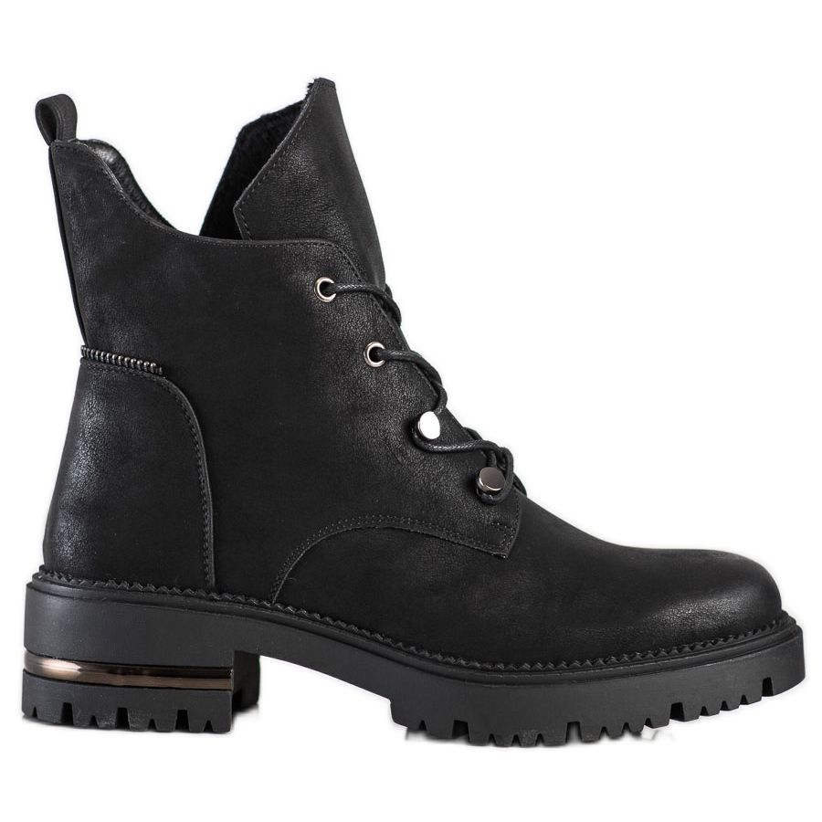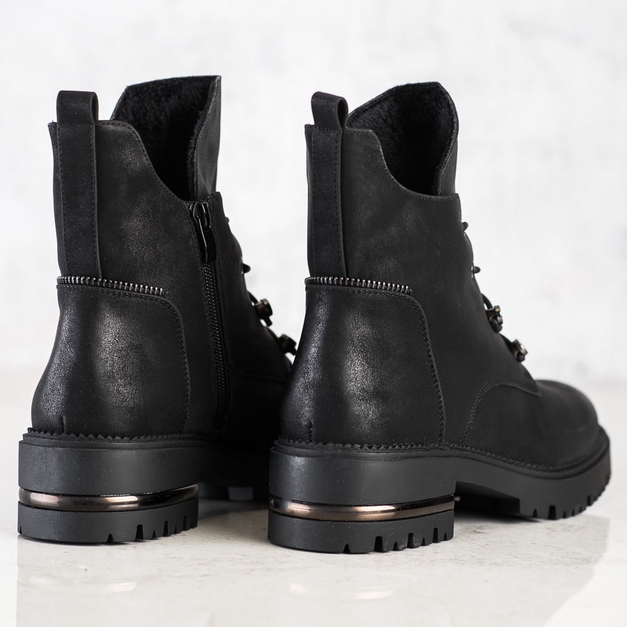 Disponibili într-o culoare neagră la modă, fără model, vor fi un plus perfect pentru orice garderobă. Înălțimea superioară de 15 cm ajunge deasupra gleznei, ceea ce adaugă caracter. Avantajele suplimentare includ fermoarul practic și închiderea cu șireturi care permit o potrivire perfectă pe picior.