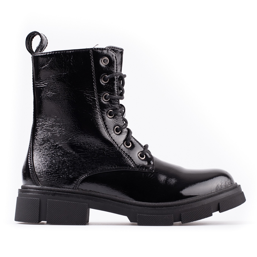 Descoperiți stilul și confortul lucrătorilor Marquiz într-un finisaj la modă negru lăcuit. Aceste botine de damă combină un aspect casual cu funcționalitatea, ceea ce le face perfecte pentru utilizarea de zi cu zi, mai ales în sezonul toamnă/iarnă.