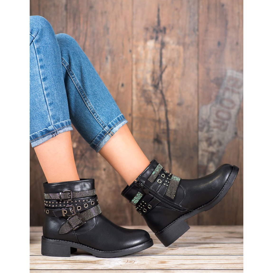 Este imposibil să le ignori - dungi decorative, strasuri și cristale subtile dau acestui model un aspect unic, rock. Aceste mici detalii îți vor accentua personalitatea și vor adăuga curaj stilului tău de zi cu zi și, în același timp, rămân universale, potrivindu-se cu o gamă largă de ținute - de la blugi casual până la ținute mai îndrăznețe, rock.