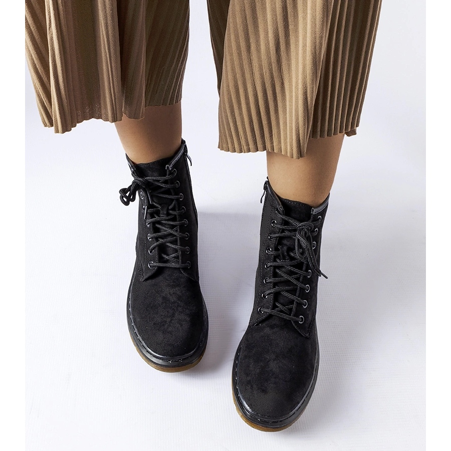 Muncitori eleganți și practici din piele de piele de căprioară ecologică într -o culoare neagră clasică, profundă. Modelul Alfred este o combinație între un aspect mondial, slalighty chunky, cu confortul utilizării - călcâie scăzută, de 4 cm și un design plat plat asigură stabilitatea și confortul pe parcursul zilei.