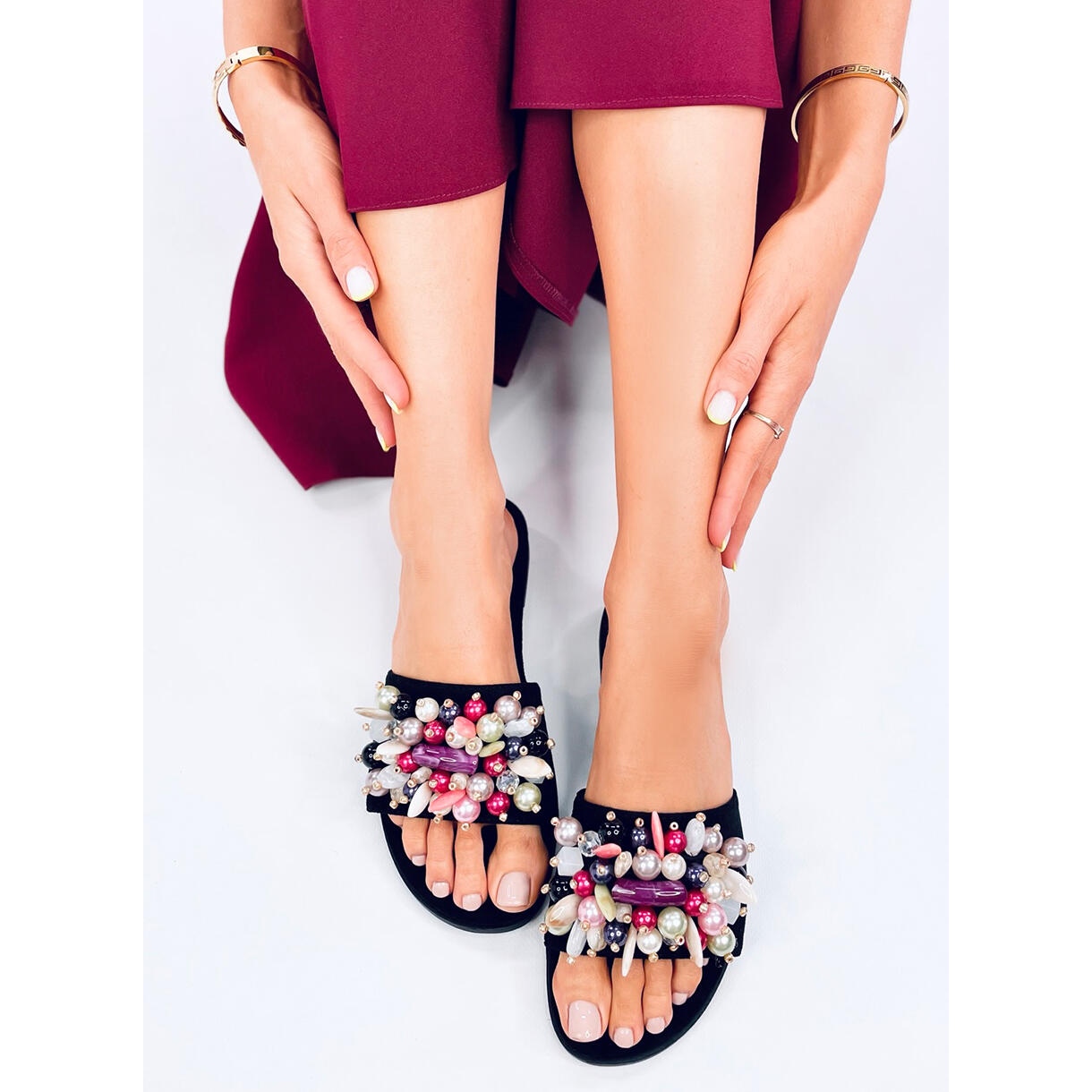 Descoperiți șlapii unici Seastar Lumsen Black, care combină confortul și stilul unic. Acești șlapi eleganti de damă cu talpă plată sunt alegerea perfectă pentru fiecare zi. Cureaua lor largă decorată cu pietre colorate atrage atenția și le face o completare perfectă pentru orice stil de vară.