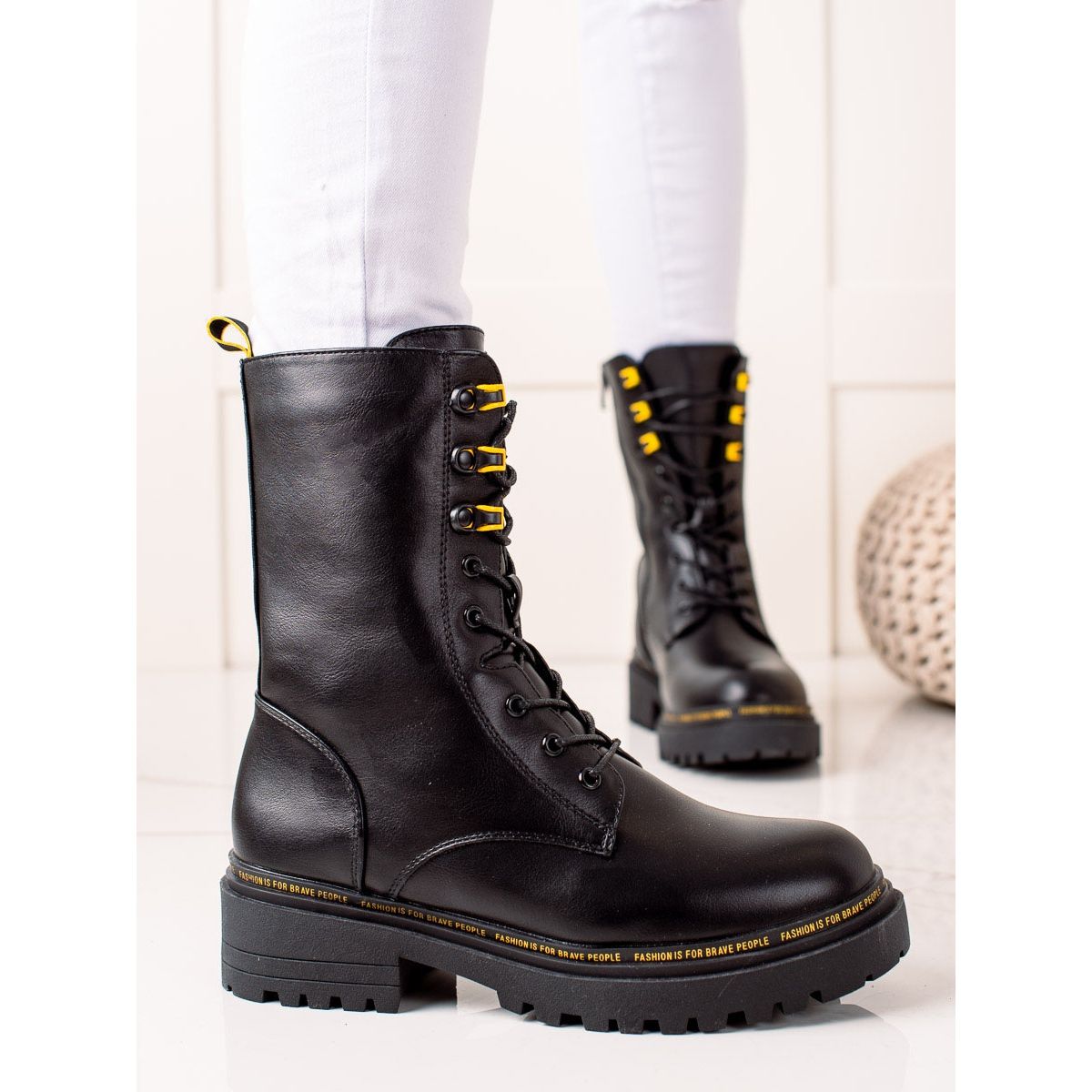Cizmele negre Potocki sunt echipate cu fermoar clasic și șireturi, ceea ce permite o ajustare ușoară la picior și o îmbrăcare confortabilă. Cu un toc plat inalt de 5 cm, sustinut suplimentar de o platforma de 3 cm, acesti pantofi imbina eleganta cu confortul la purtare.