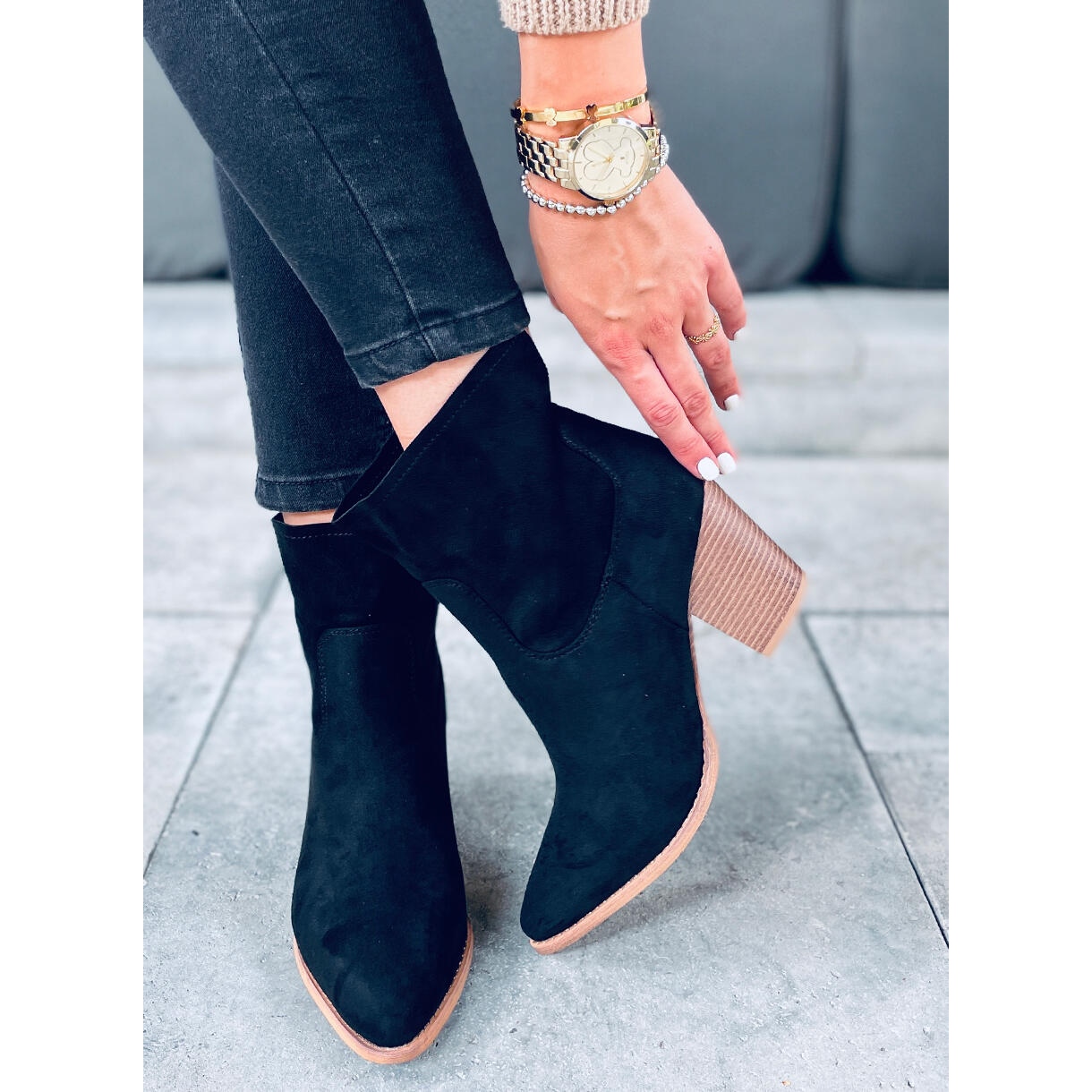 Descoperiți eleganța și confortul cu botinele cu toc înalt de piele de căprioară Martin Black. Aceste botine negre de damă combină o croială subțire și un design modern. Degetul lor ușor ascuțit și tocul lat de 7,5 cm vor face ca fiecare femeie să se simtă elegantă și confortabilă. Partea superioară largi, cu un decupaj practic la spate, le face ușor de îmbrăcat, făcându-le o alegere ideală pentru utilizarea de zi cu zi.
