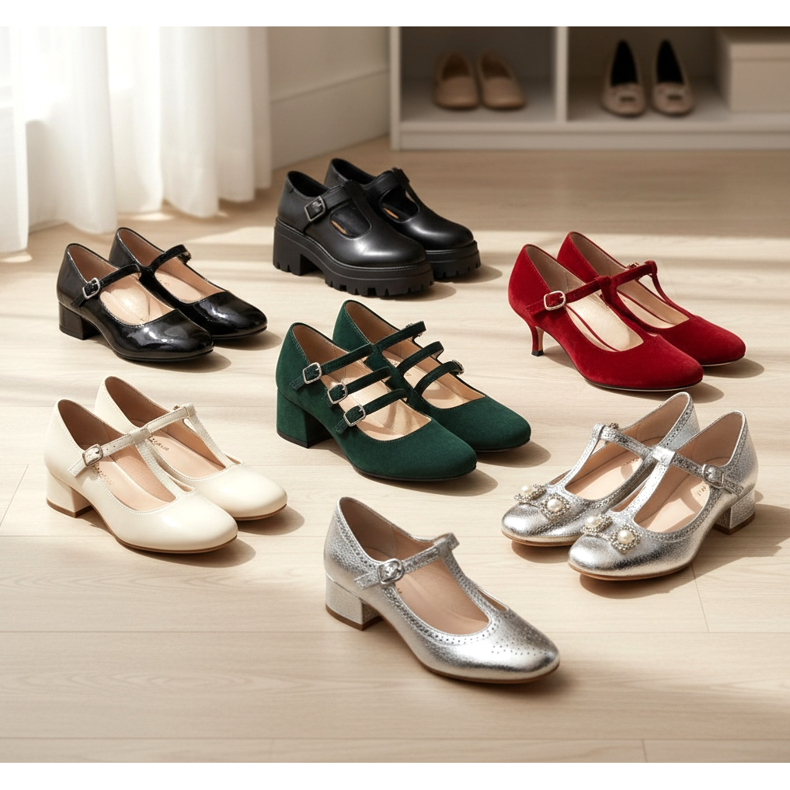 Există multe variante Mary Jane disponibile pe piață, care diferă prin înălțimea tocului, material și stil.