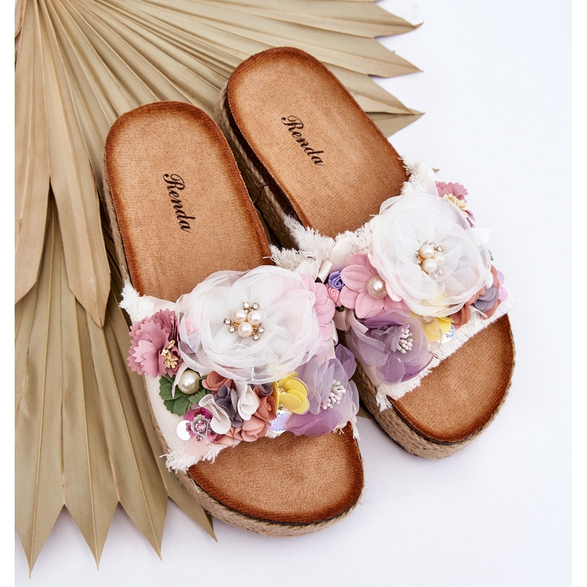 Slapii albi din material Nessa cu flori sunt chintesența verii, eleganța casual combinată cu confortul de utilizare. Perfect pentru femeile care doresc să adauge un pic de originalitate și romantism stilului lor.