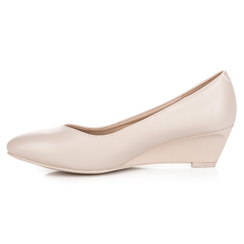 Pompele sunt caracterizate de o pană de 5,5 cm înălțime, care nu numai că garantează stabilitatea, ci și subțiază eficient picioarele. Datorită vârfului rotund și închiderii cu slip-on, încălțarea și scoaterea pantofilor este rapidă și convenabilă. Fabricate din materiale de înaltă calitate, poți fi sigur și de aceste pompe din punct de vedere al confortului - branțul din piele asigură ventilație și confort adecvat în timpul orelor lungi de purtare.