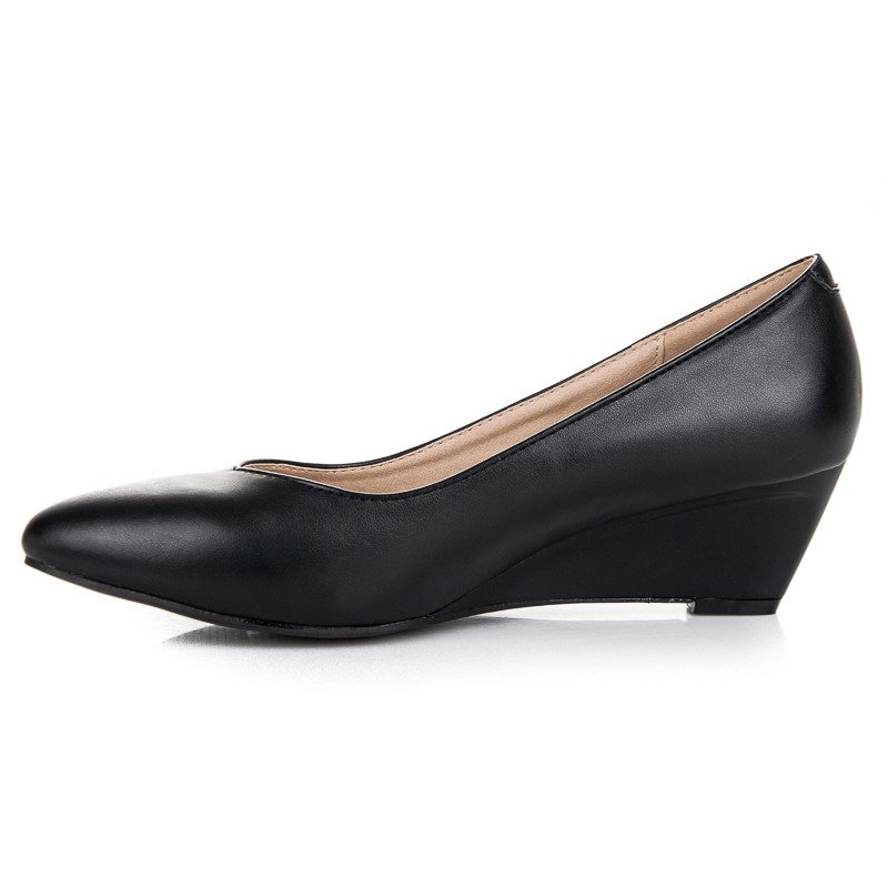 Pana de 5,5 cm înălțime nu numai că adaugă câțiva centimetri înălțime, dar asigură și stabilitate și confort pentru perioade lungi de timp. Confectionate din piele ecologica de inalta calitate, pompele nu sunt doar estetice, ci si usor de curatat si intretinut. Varful rotund le confera un caracter subtil, iar inchiderea cu slip-on face ca incaltarea si scoaterea lor sa fie o placere pura.