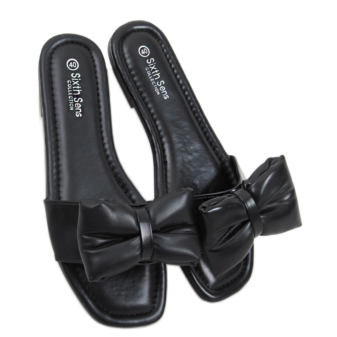 Șlapii Mili Black cu fundă sunt alegerea perfectă pentru femeile care doresc să îmbine stilul cu confortul. Acești papuci de damă negri, din bob, se remarcă printr-o croială elegantă, pătrată și o fundă seducătoare care atrage privirea și adaugă un farmec unic întregului. Datorită tocului plat, fiecare pas în aceste șlapi va fi ușor și confortabil.