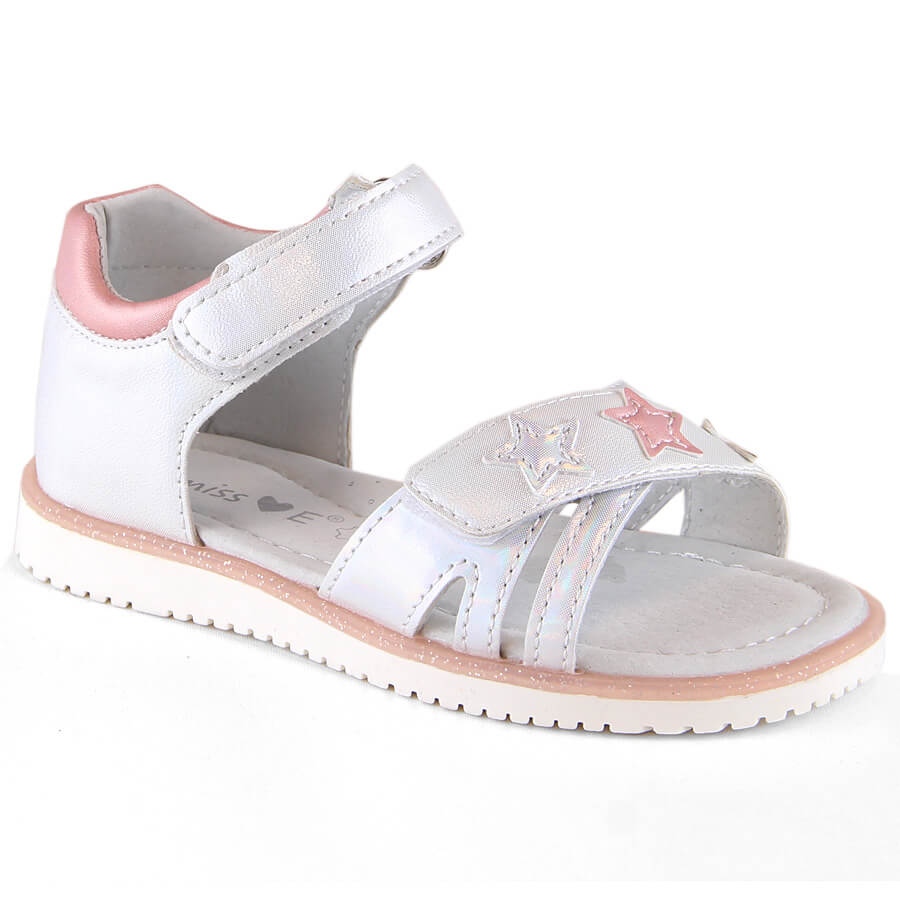 Detalii: Evento Miss. Sandale cu velcro argintiu pentru fete