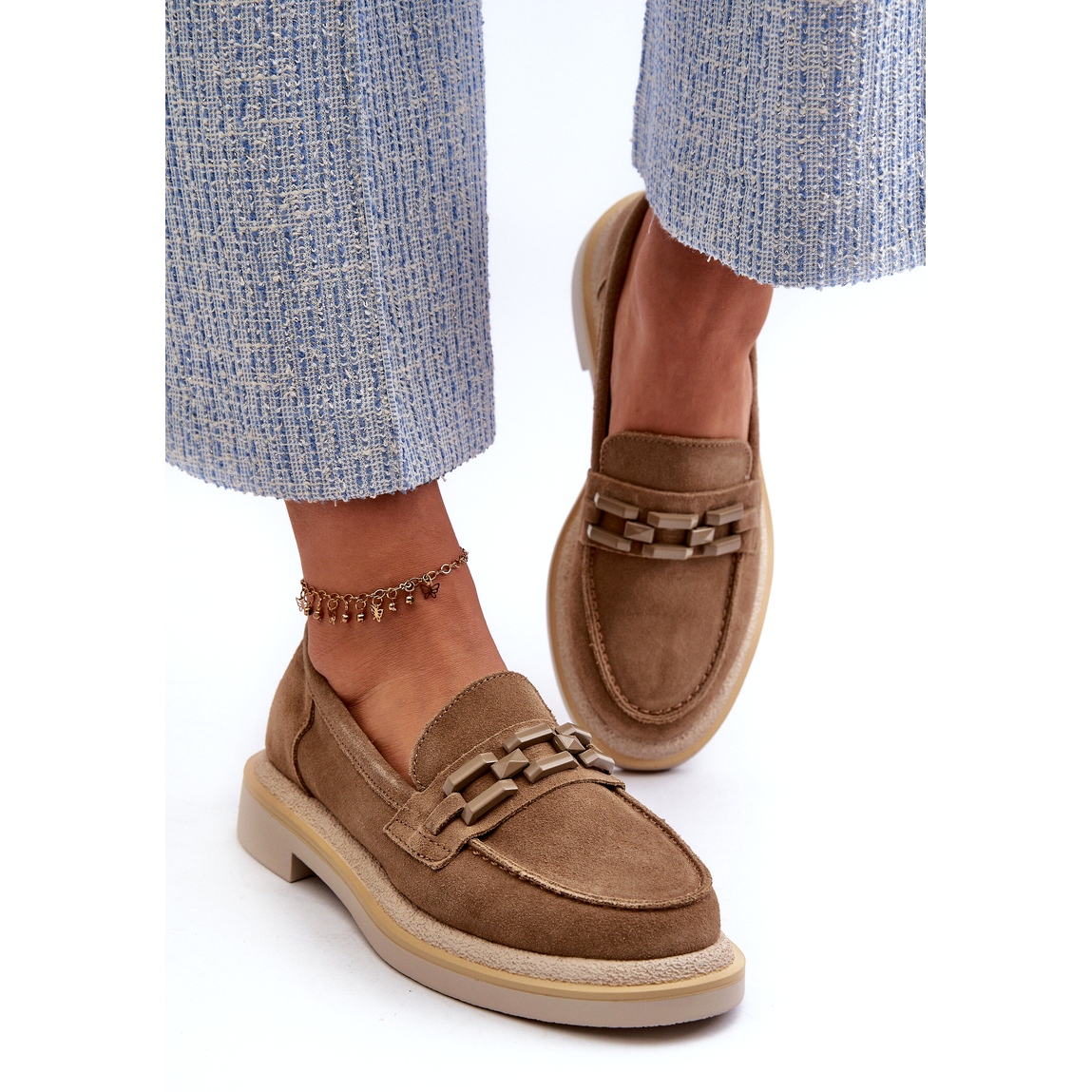 S.Barski S.Barski Mocasine din piele de căprioară cu toc plat cu un bronz TW101 bej