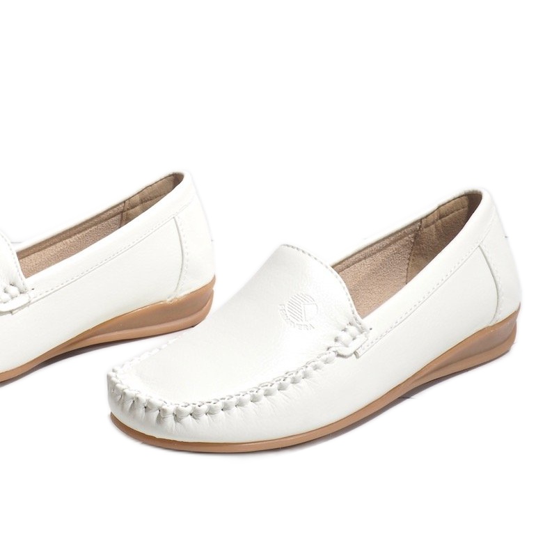 Mocasinii 8-01 sunt alegerea perfectă pentru femeile care prețuiesc modă și confort. Fără model, într-o culoare albă universală, se potrivesc cu multe stiluri - se potrivesc perfect atât cu blugii, cât și cu rochiile vaporoase.