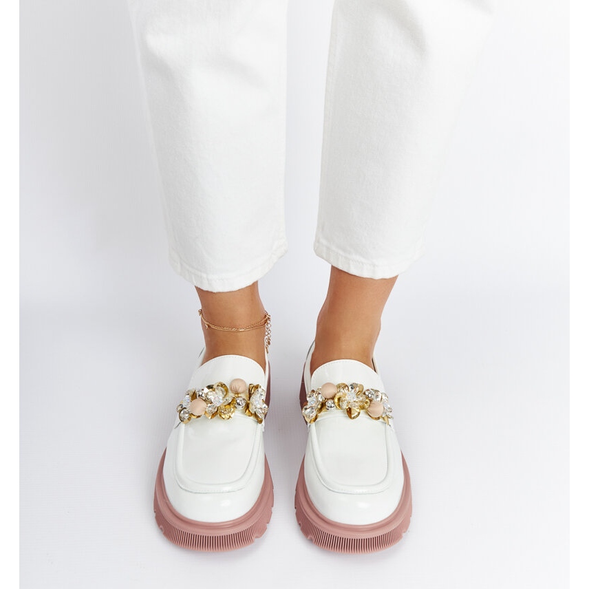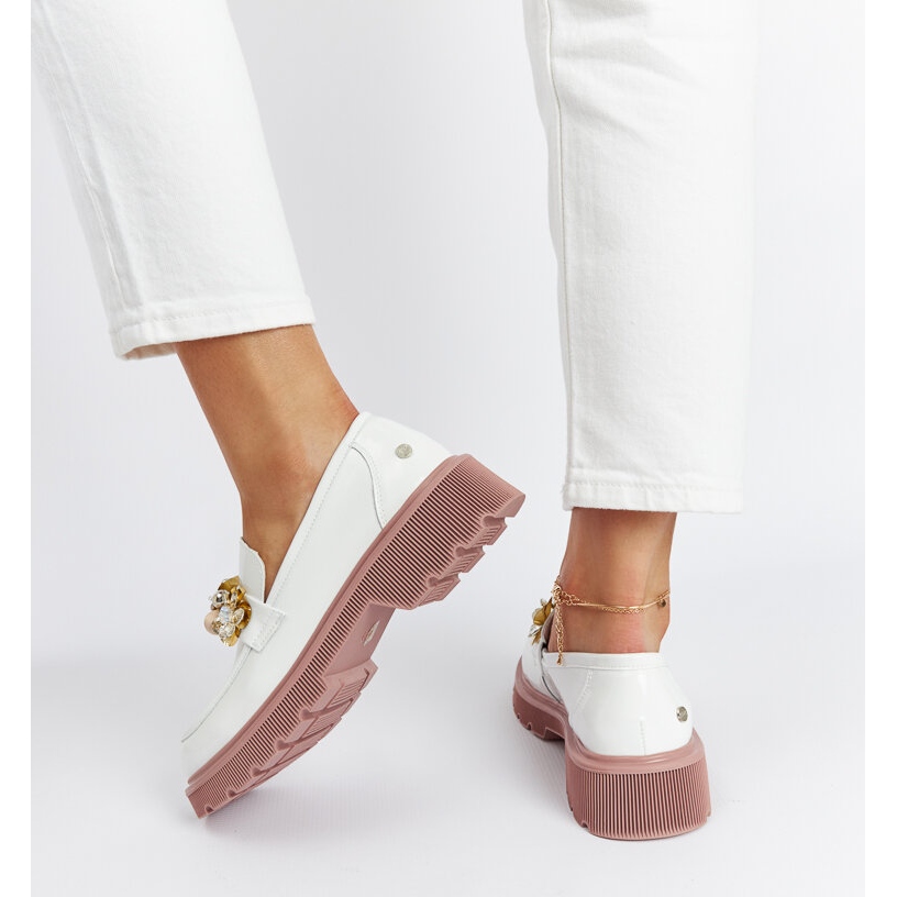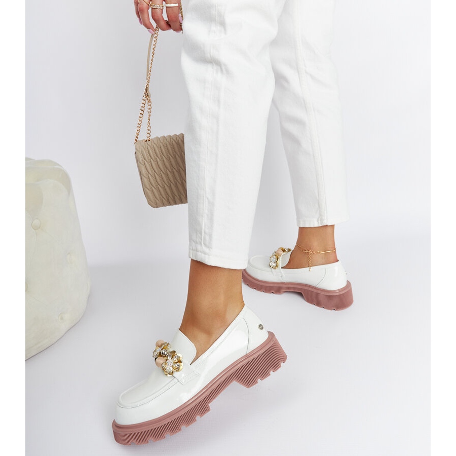 Detalii: Mocasini albi din piele lacuita Goe NN2N4201