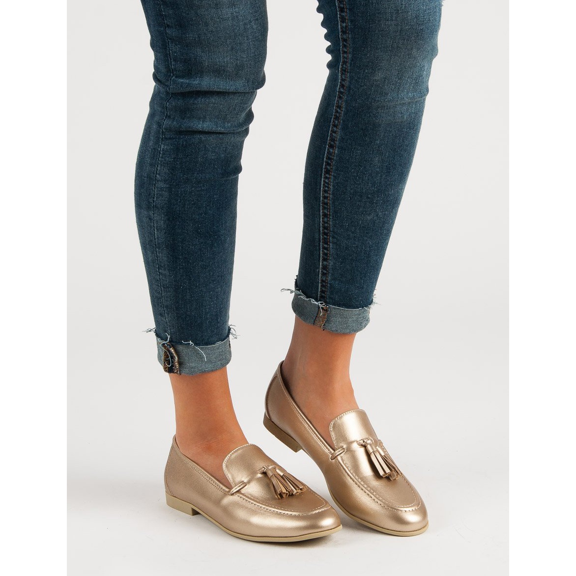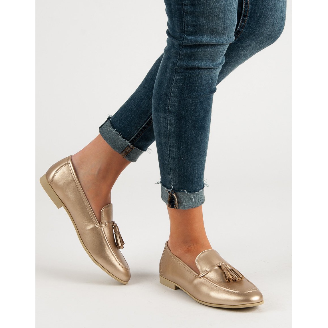Detalii: Mocasini aurii cu franjuri VICES de aur