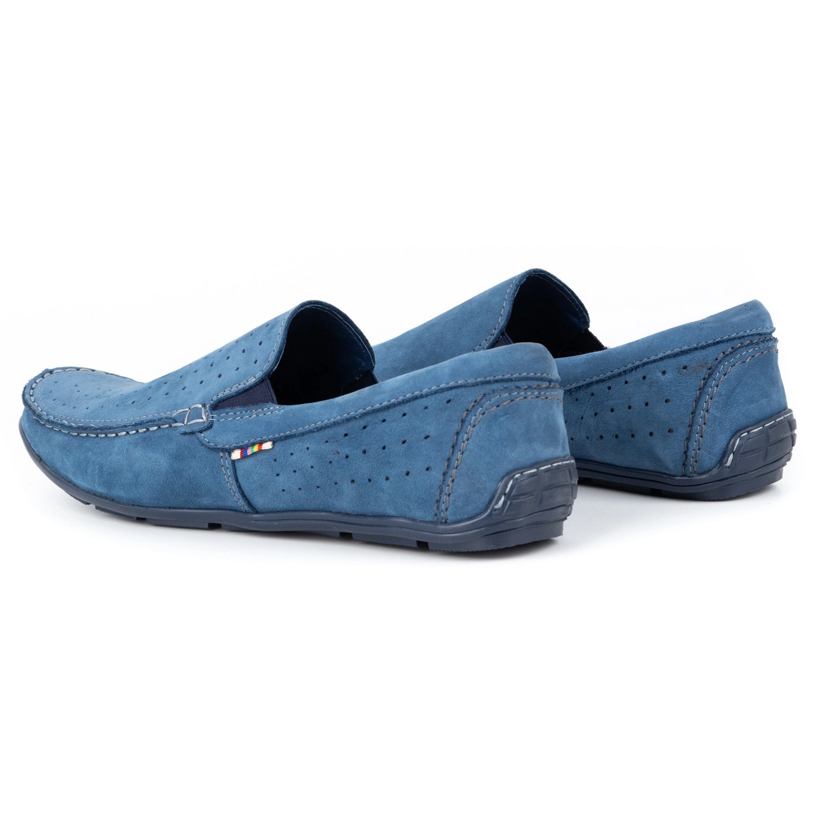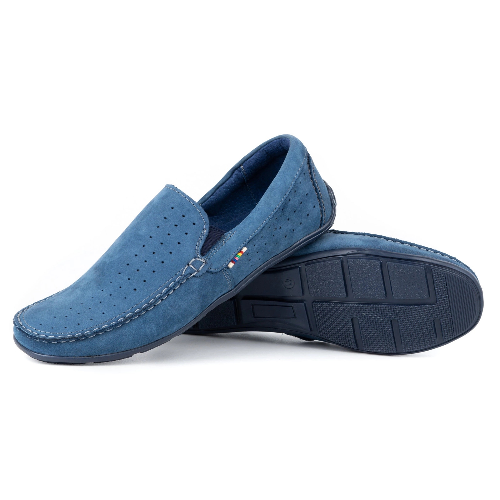 Cusăturile contrastante adaugă originalitate mocasinilor. Sunt disponibile într-o singură culoare - albastru, ceea ce face ușoară asortarea lor la diferite stiluri. Incaltamintea este usoara si confortabila pentru picioare.