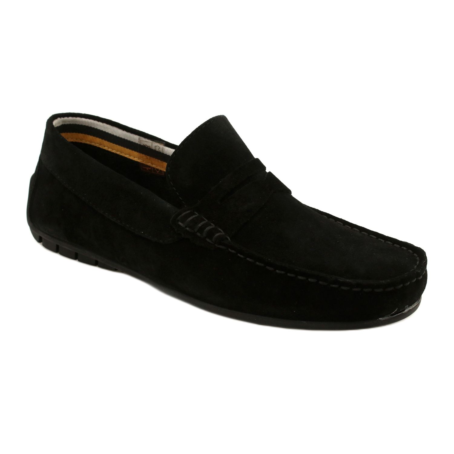 Filippo MP921/23 - Mocasinele bărbaților negri din piele din piele de căprioară