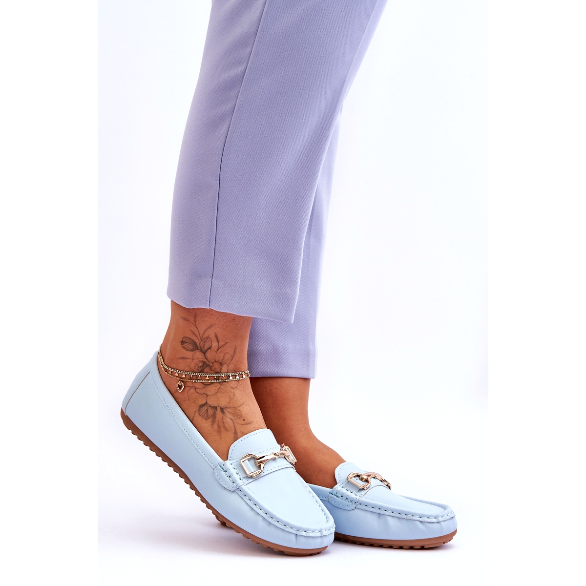 Mocasinii Verona de culoare albastru deschis sunt asezati pe o platforma delicata inalta de 1,5 cm, care adauga un pic de inaltime si in acelasi timp asigura un pas increzator si stabilizarea adecvata a piciorului. Varful rotund al pantofului ofera suficient spatiu pentru degetele de la picioare si nu restrictioneaza miscarea, asigurand libertate pe tot parcursul zilei.